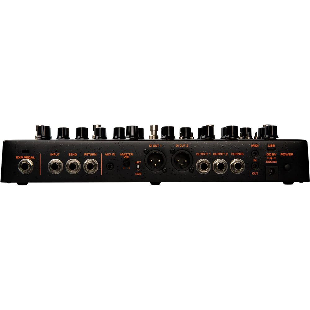 With a massive 96 preset slots, a tuner, all your effects, an additional boost and a 60 second phrase looper all controlled by the 10 footswitches, this intuitive interface is surprisingly easy to navigate on-the-fly.