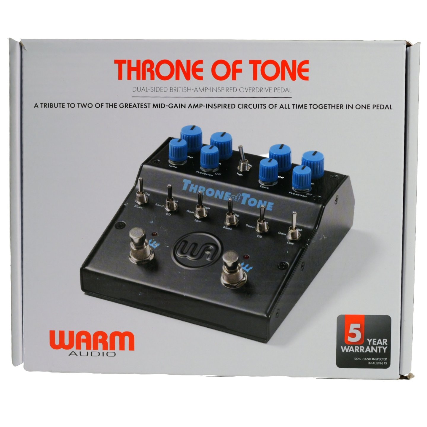 The Throne Of Tone is a tribute to not one, but two extremely sought-after overdrive pedals based on a classic amplifier recording in the late 1960s. Twenty-five years after Blues Breakers With Eric Clapton changed tone chasing forever, a now-classic amp-in-a-box style pedal was launched and set a new standard in transparent amp-like overdrive tones. From that original pedal, a modified, two-sided boutique OD would emerge over a decade later and change the hierarchy of guitar overdrive for good. The original pedals used by artists like John Mayer, Gary Clark Jr, and John Petrucci are known to blend in with any rig, or transform clean tones into completely different tone stacks. Offering these two legendary circuits in one pedal with unprecedented combinations, Throne of Tone delivers all of the tonal bliss of the vintage originals with critical features and controls easily accessible at all times.